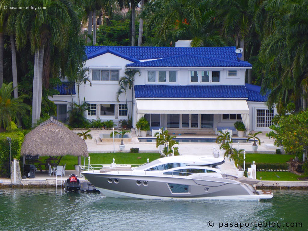 Lo primero que voy a compartir es esta foto del skyline de Miami, visto desde el crucero. Pero ahora vamos a centrarnos en nuestro noveno día en Miami. ¿Qué es lo primero que hicimos? Pues una «turistada», contratar una excursión para ver desde el «Boat Miami» las mansiones de los famosos. El barco nos llevaba por Biscayne Bay, Fisher Island (La isla privada que sale el Bloody Miami de Tom Wolfe, libro muy recomendable como preparación al viaje) y en general las Venetian Islands.